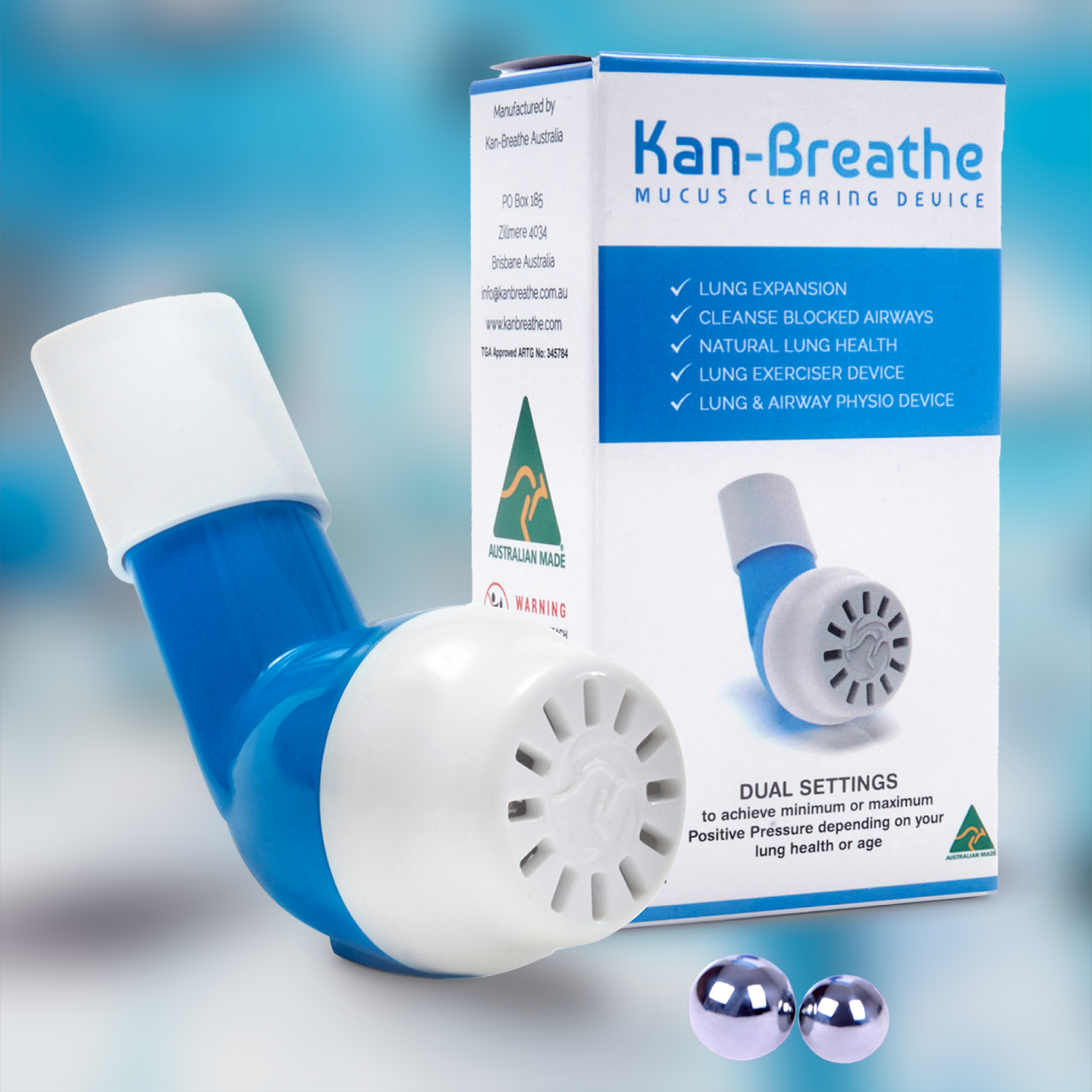 However, much of this suffering could be alleviated with regular use of Kan-Breathe, a simple mucus clearance and lung exerciser device manufactured here in Australia. The Kan-Breathe is a readily available PEP therapy device for home use which encourages a Positive Expiratory Pressure by creating resistance to exhalation by the user, whether young or old. Exercising twice a day with the Kan-Breathe mobilises mucus towards the larger airways from which it can more readily be coughed up and discharged from the body. As well as being a highly effective mucus removal device for lungs and lung exerciser machine for COPD, the simple to use and maintain Kan-Breathe is often also used by athletes as a lung capacity improvement device, helping to enhance endurance.